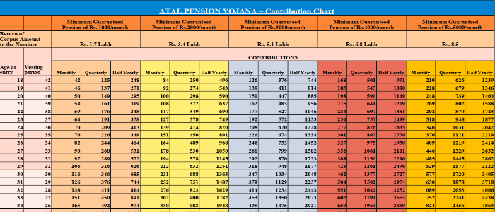 | Monthly Pension | ₹1000 to ₹5000 (guaranteed by Government) |