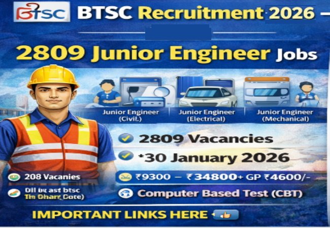 • BTSC Recruitment 2025–2026 के तहत कुल 2809 Junior Engineer posts (Civil, Electrical, Mechanical) और 702 Dental Hygienist posts जारी की गई हैं।