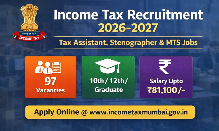 Frequently Asked Questions (FAQ) – Income Tax Recruitment 2026–2027Q1. What is the Office of the Principal Chief Commissioner of Income Tax Recruitment 2026–2027?It is a central government recruitment drive conducted by the Office of the Principal Chief Commissioner of Income Tax to fill 97 Group ‘C’ vacancies for the posts of Tax Assistant, Stenographer Grade-II, and Multi-Tasking Staff (MTS). Q2. How many total vacancies are released?A total of 97 vacancies have been announced in this recruitment. Q3. Which posts are available under this recruitment?The available posts are: