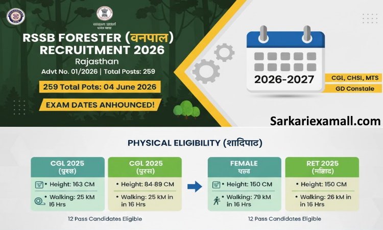 Q3. Forester Exam ki tarikh (Exam Date) kya nishchit ki gayi hai?Jawab: Rajasthan Staff Selection Board (RSSB) ke anusar, Forester ki pariksha 28 June 2026 ko aayojit ki jayegi. Admit card pariksha se lagbhag 7-10 din pehle official website par uplabdh honge.